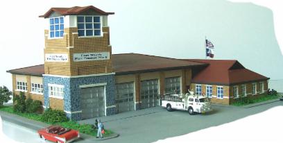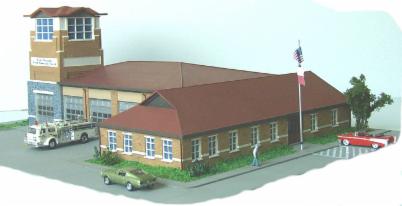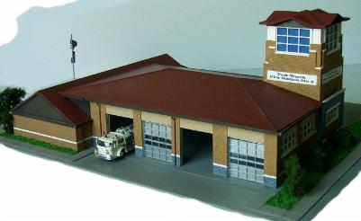 Dieses moderne Gebäude hat die alte Fire Station ersetzt. Der Neubau basiert auf die gestiegenen Anforderungen und beherbergt drei Company`s. Der Bausatz enthällt ebenfalls für die Frontseite bewegliche Rolltore